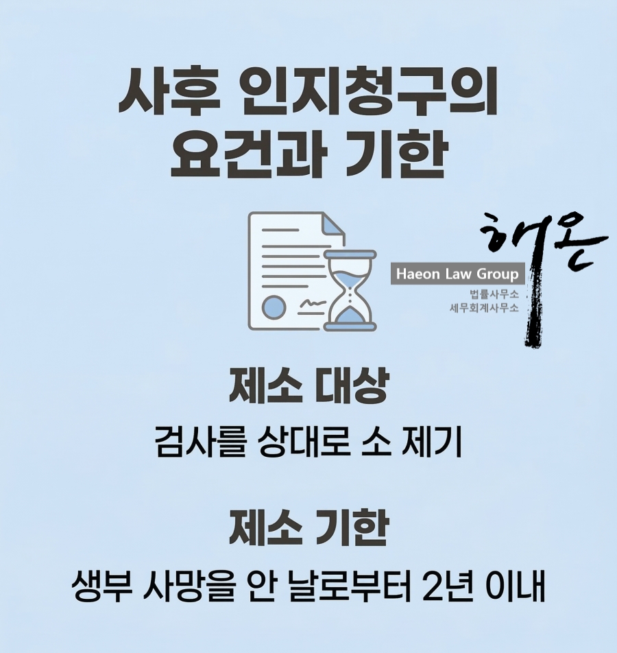 ※ 위 제척기간이 도과할 경우 소가 부적법한 것으로 각하되므로, 혼외자는 사망 사실을 인지한 즉시 법원 절차에 착수해야 합니다.